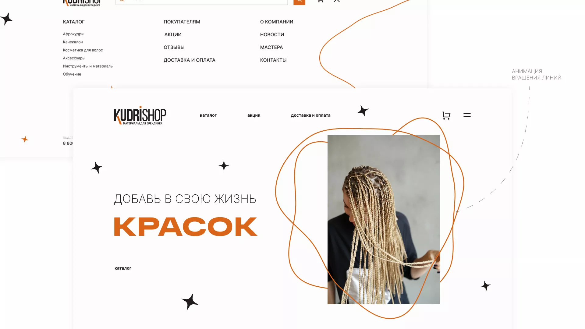 Создание интернет-магазина по продаже афрокудрей и других материалов для брендинга в Апатитах. Целевая аудитория — молодые и современные девушки, желающие разнообразить свой образ.